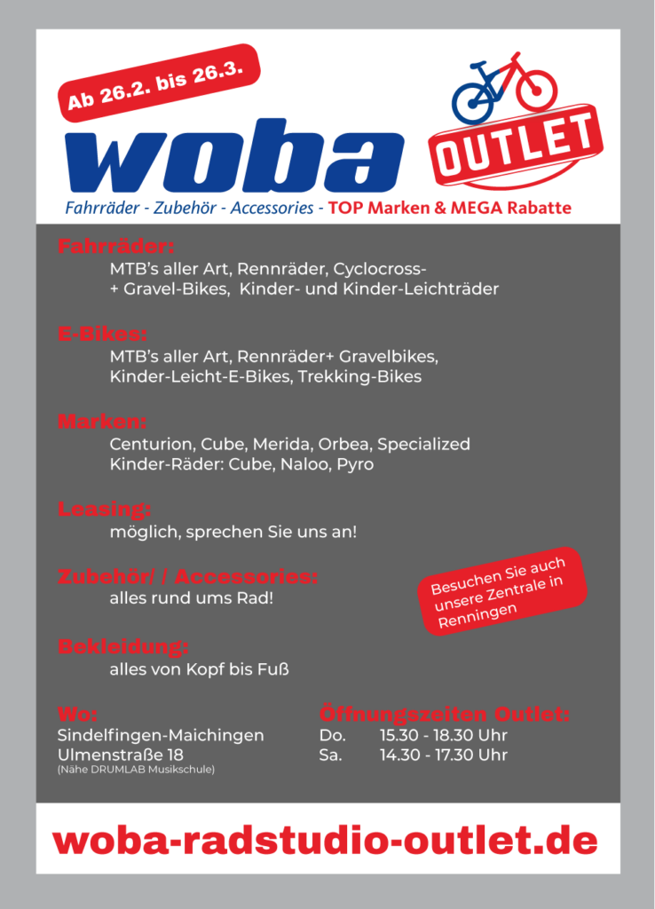 es ist so weit, unser „woba-RadStudio-Outlet“ startet, und zwar vom